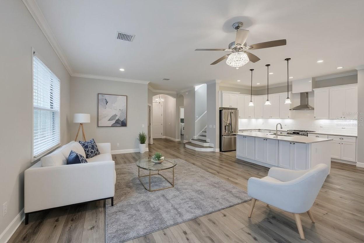 One or more photo(s) has been virtually staged. Priced to sell!! This newly updated residence, nestled within the highly coveted Esplanade Golf & Country Club, offers an all year round resort-style living experience. The home boasts four generously sized bedrooms, three are accompanied by their own private bathroom, with the fourth sharing with the bonus room along with an additional half bath. The heart of the home, the gourmet chef's kitchen, occupies a central position, providing a spacious and inviting ambiance as it overlooks the open floor plan great room and dining area. Effortlessly entertain guests or family members as they mingle in the expansive great room or seamlessly transition through the triple disappearing sliders to the oversized covered lanai with a new built-in outdoor kitchen containing a sink, fridge and gas grill! The outdoor space is designed for outdoor enthusiasts, featuring an extended lanai area, ideal for hosting outdoor gatherings. Notable features abound, including a new kitchen inside with a walk-in pantry, an expansive laundry room with ample storage, and a separate office space. The primary suite, located off the great room, offers a tranquil retreat with its spa-like upgrades featuring dual sinks, a spacious shower, a walk-in closet, and a bay window overlooking the private back lawn. Upstairs, a sprawling bonus room awaits, offering versatility as a media room, game room, or additional living area. The garage includes a four-foot extension, providing additional storage capacity. While this home does not require a golf membership, residents can relish in the Esplanade lifestyle, with access to the 18-hole championship golf course, a 15,000 SF culinary center offering poolside dining at the Bahama Bar or the Barrell House Bistro, and an on-site spa. Leisure options are abundant, with activities such as mahjongg, paint classes, wine nights, and more. For those less inclined towards golf, there are bocce, tennis, and pickleball courts, billiards, and even a nail salon. Two dog parks and a separate pool and amenity center cater to those who prefer not to use the club facilities. Lakewood Ranch boasts two downtown areas, including the vibrant Waterside, with its forthcoming water taxis, diverse dining options, Ranch food truck nights, and more. Additionally, residents are just minutes away from Sarasota and its thriving cultural scene, encompassing opera, ballet, symphony, and repertory theater. The world-class beaches of Siesta Key and Anna Maria Island are a short drive away along with easily access to St. Petersburg and Tampa.